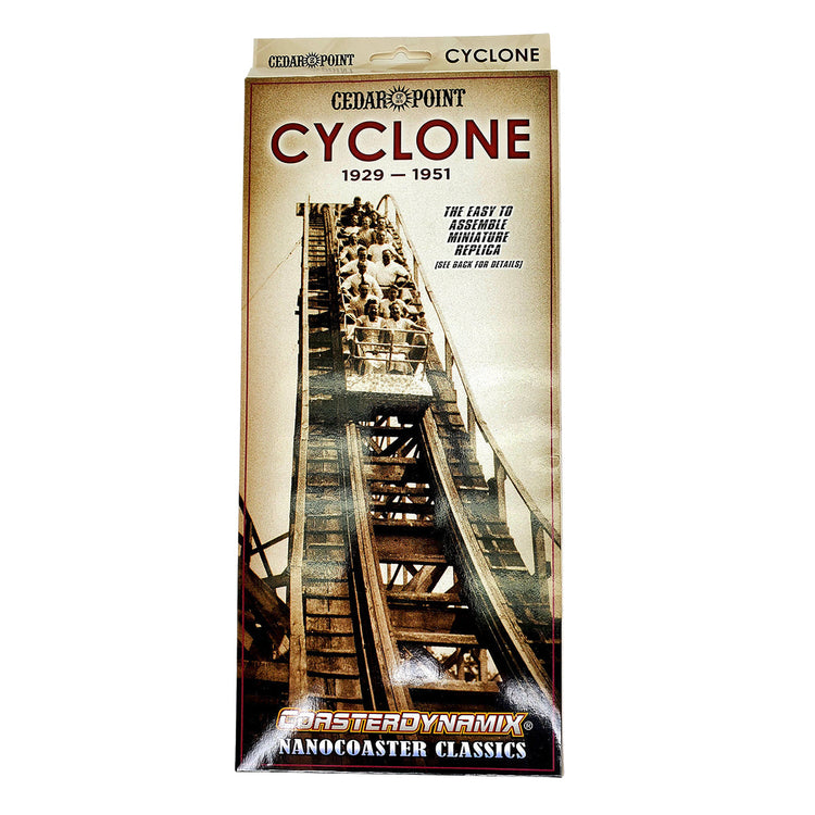 Cyclone Metal Coaster Model Kit (All items included). This is for the long-time Cedar Point coaster fans! Cyclone was a wooden sit-down roller coaster that operated between 1929 and 1951. Create a replica of this truly classic coaster.