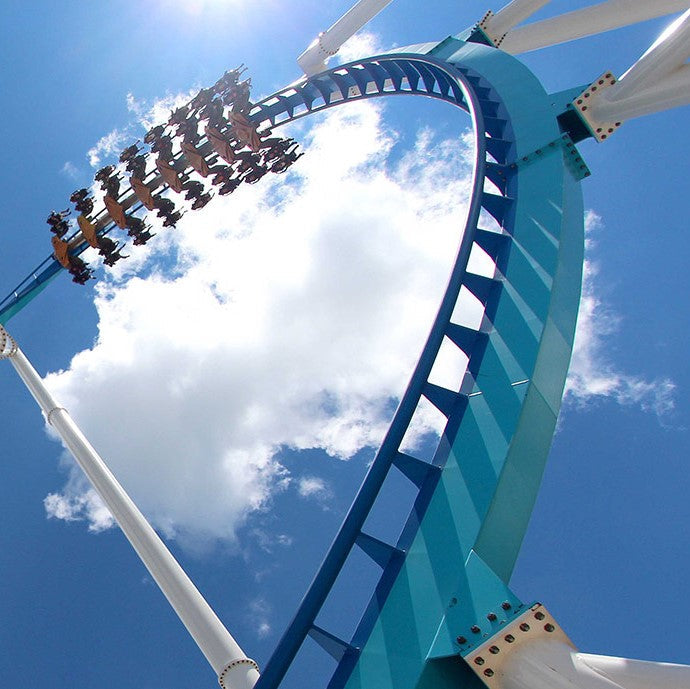 NanoCoasters are stainless steel, laser-cut miniature roller coaster building kits.