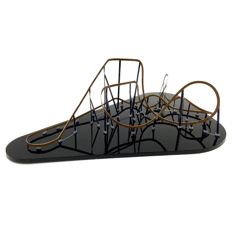 NanoCoasters are stainless steel, laser-cut miniature roller coaster building kits.