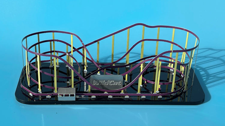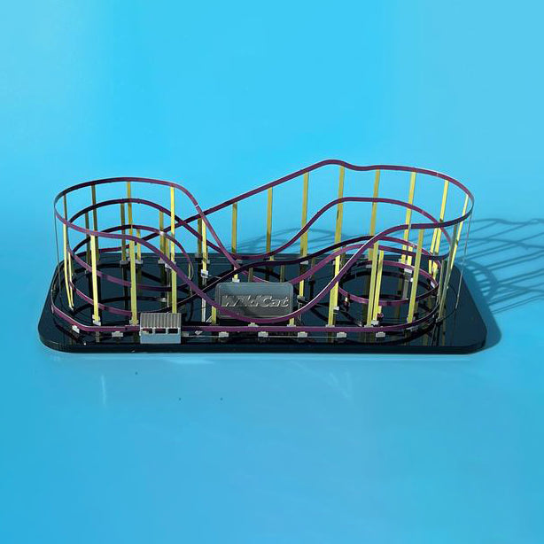 NanoCoasters are stainless steel, laser-cut miniature roller coaster building kits.
