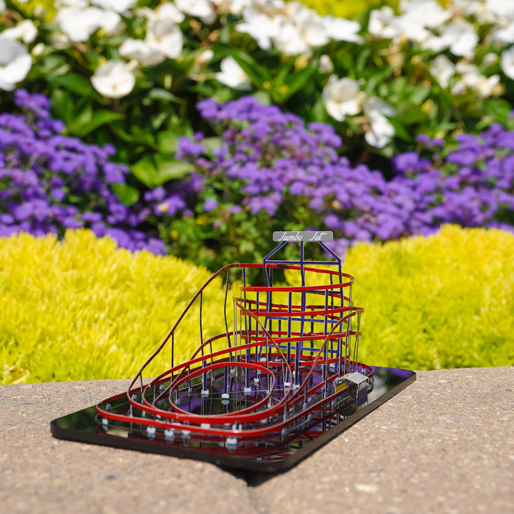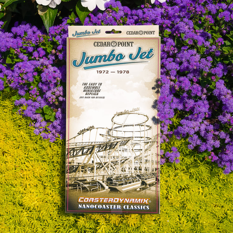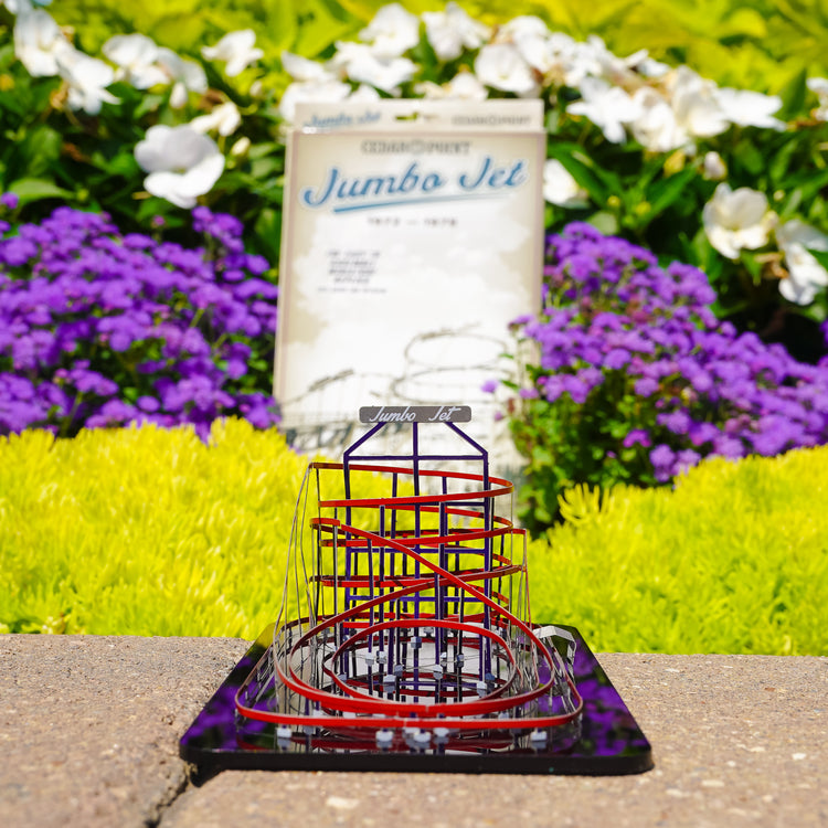 Jumbo Jet Metal Coaster Model Kit (All items included). Jumbo Jet was a steel coaster that operated from 1972 to 1978. It was one of the first coasters in the world to utilize an electric spiral lift mechanism.