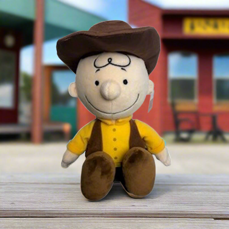 Celebrate with this 11" Charlie Brown Cowboy Plush! The perfect gift for fans, it features an adorable hat, boots, and a vest, perfect for inspiring imaginative play. Bring the classic PEANUTS® characters to life today!