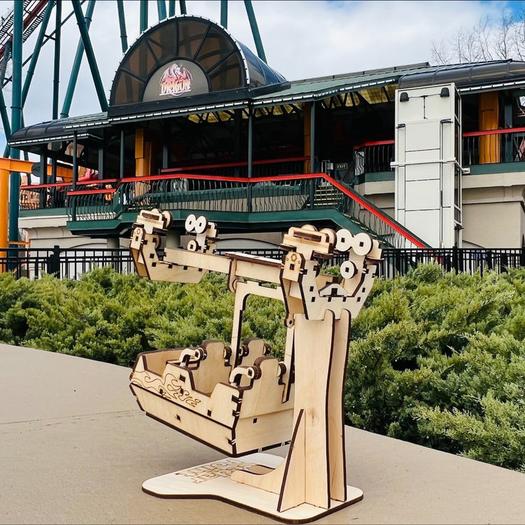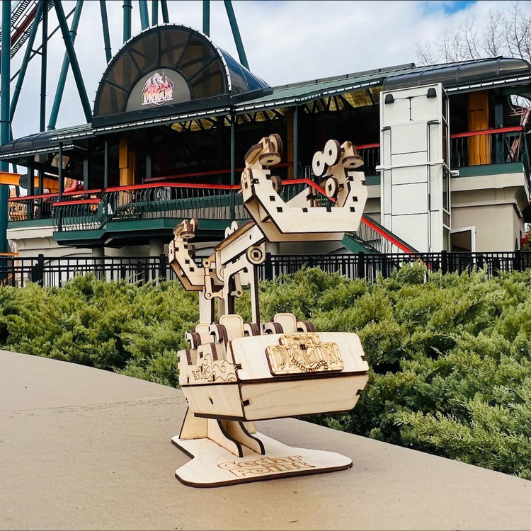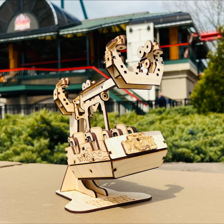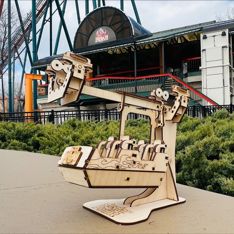 Precision laser cut out of birch plywood and 100% made in the USA, Coaster Cutouts press fit together like a 3-dimensional puzzle to create models of your favorite rides.
