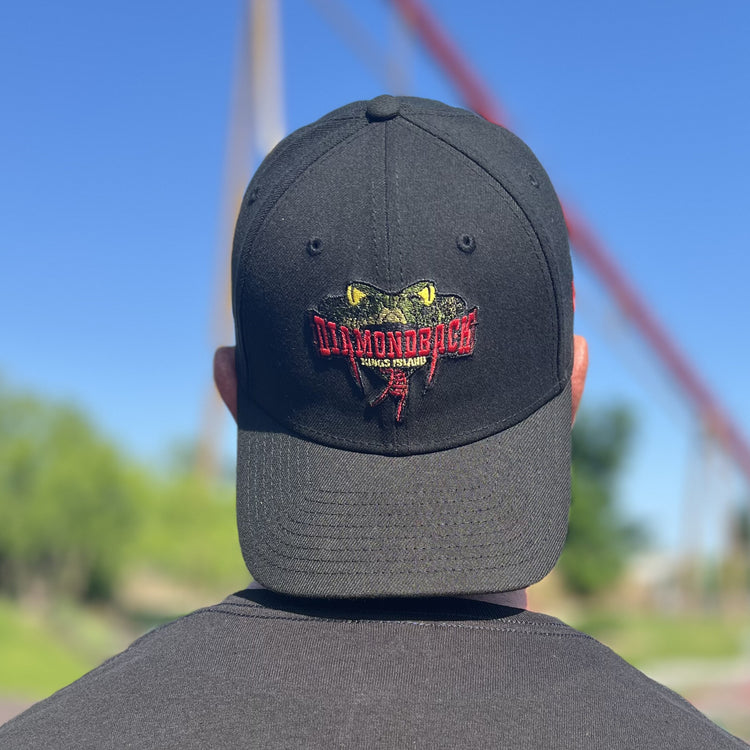 Showing off your love for Diamondback has never looked better! This fitted Diamondback New Era hat features the ride logo embroidered across the front along with the New Era logo and Kings Island retro logo on the side and back in red. 95% Polyester 5% Spandex