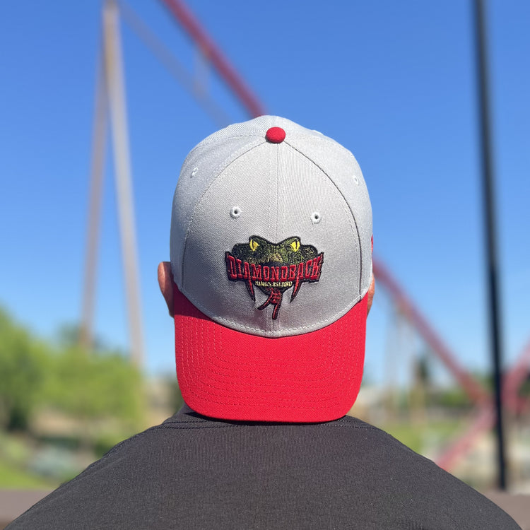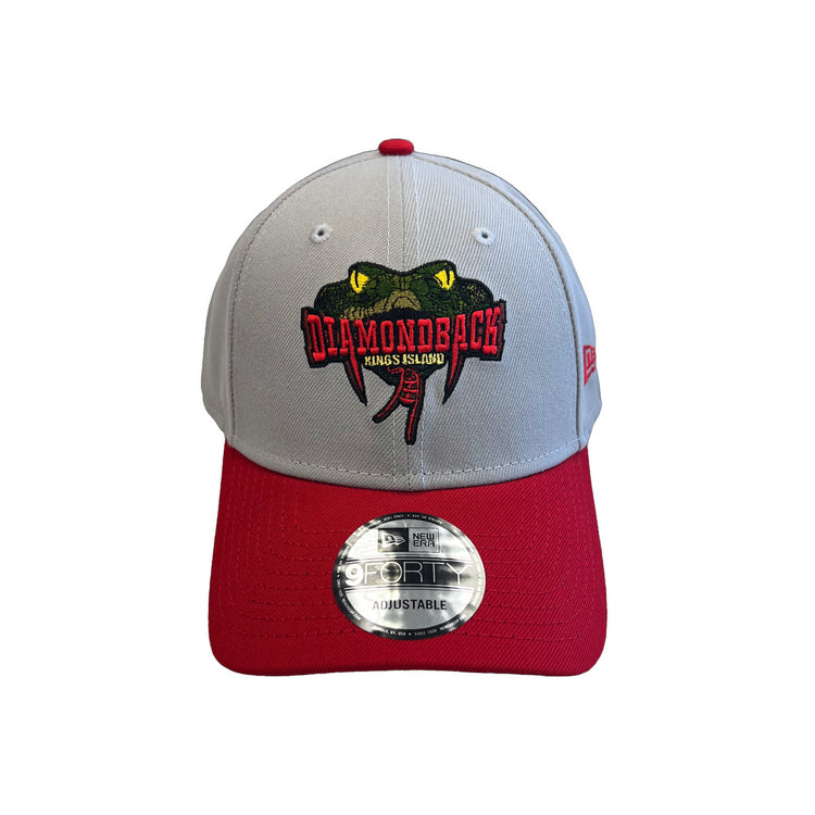 If Diamondback is your favorite Kings Island Roller Coaster, this New Era hat is a must have. Showcasing the Diamondback logo embroidered across the front, this ball cap also is color coordinated with scarlet accents. OSFM 100% Polyester