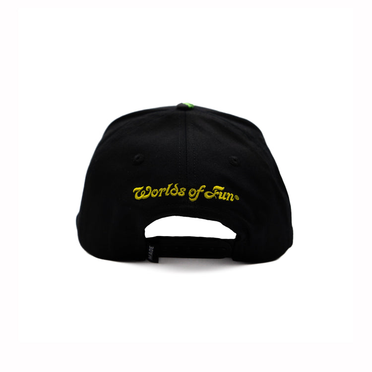 This cap boasts a striking snakeskin-printed visor and cool MAMBA® branding, perfectly embodying the thrilling legacy of the rollercoaster. With a nod to both nostalgia and fashion, this snapback pays tribute to the ride's heart-stopping 205-foot descent and never-ending velocity.