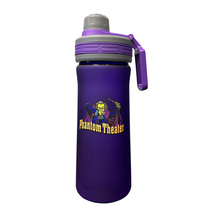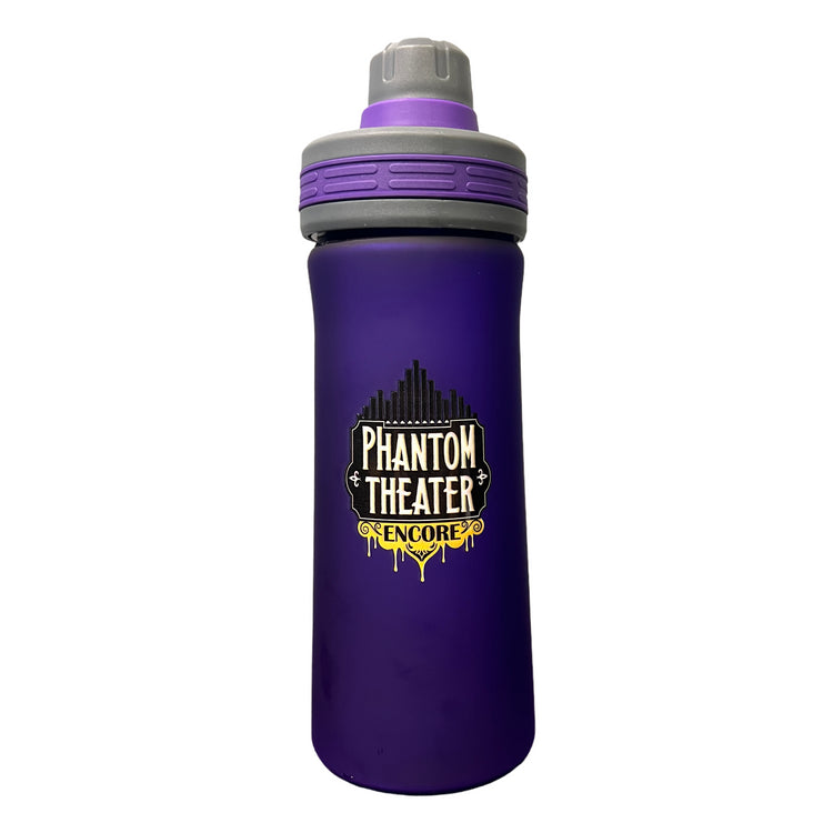 Stay hydrated through the entire show with this Phantom Theater waterbottle. Showing the ride logo on one side, and the Phantom Theater Encore logo on the other, this bottle is perfect whether you are a fan of the ride or show.