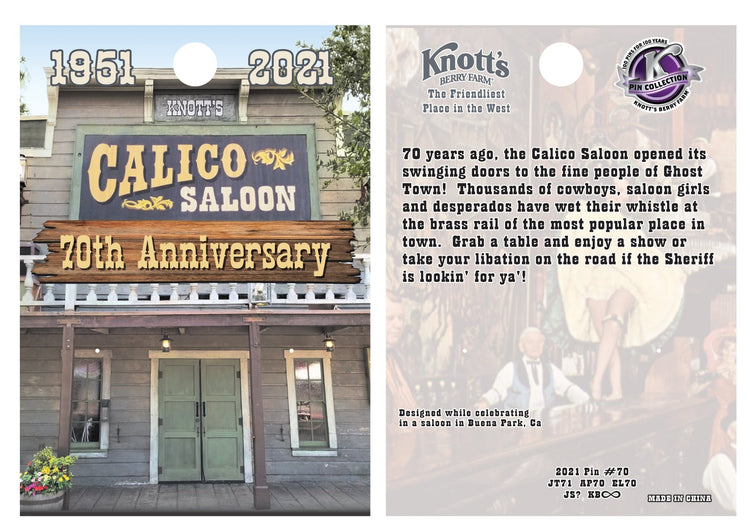 Knott's Berry Farm Calico Saloon 70th Anniversary Collectible Pin