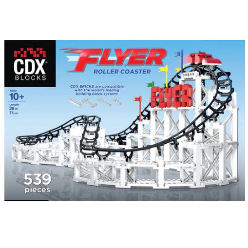 The CDX Flyer is the right combination of price and value. Modeled off of a classic wooden roller coaster, the Flyer is easy and fun to build. Use the included hand crank or add a CDX custom motor for automated thrills. The CDX Blocks motor kit comes with a 100rpm motor and a 6v power supply.