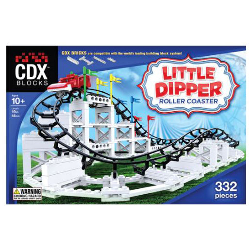 The Little Dipper is a block based (Lego compatible) roller coaster kit. This fun and easy to assemble kit is the perfect introduction to the CDX line of roller coaster models. Realistic operation using a chain to haul the train to the top of the hill, with gravity taking over from there. Use the included hand crank or add a CDX custom motor for automated thrills. The CDX Blocks motor kit comes with a 100rpm motor and a 6v power supply.