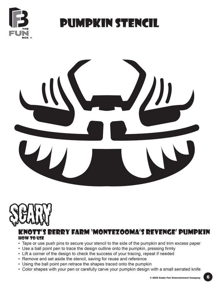 Pumpkin-carving is a must Halloween activity, and we've created some new faces inspired by Knott's characters and attractions. Show off your favorite park with these exclusive jack-o'-lantern stencils.