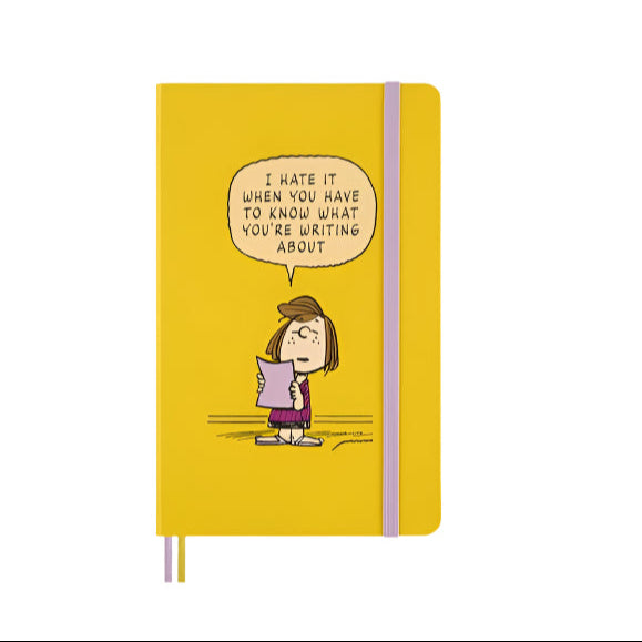 Keep your thoughts and doodles organized with the PEANUTS® Moleskin Peppermint Patty Notebook. This large, ruled hardcover notebook features playful stickers, a handy bookmark, and two matching ribbon bookmarks to mark your favorite pages. Rounded corners and an elastic closure keep it neat, while acid-free, FSC-certified paper ensures your notes stay vibrant and eco-friendly. The expandable inner pocket holds your little treasures, and the notebook lies flat for easy writing—perfect for all your creative adventures!