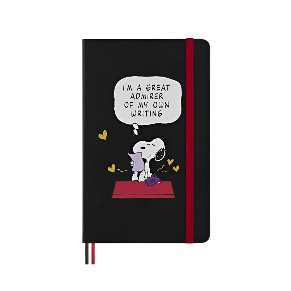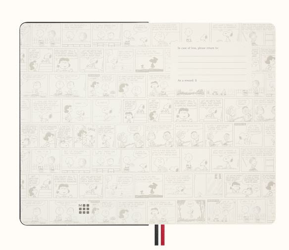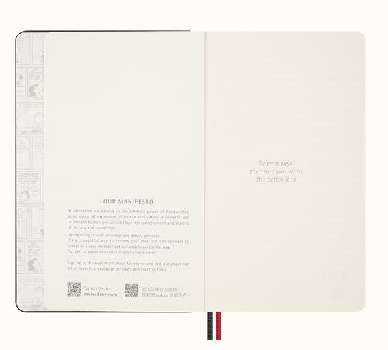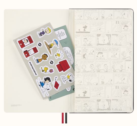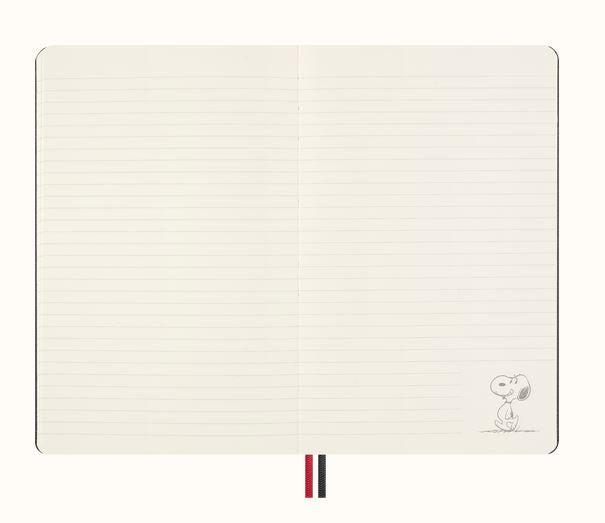 Keep your thoughts and doodles organized with the PEANUTS® Moleskin Snoopy Notebook. This large, ruled hardcover notebook features playful stickers, a handy bookmark, and two matching ribbon bookmarks to mark your favorite pages. Rounded corners and an elastic closure keep it neat, while acid-free, FSC-certified paper ensures your notes stay vibrant and eco-friendly. The expandable inner pocket holds your little treasures, and the notebook lies flat for easy writing—perfect for all your creative adventures!