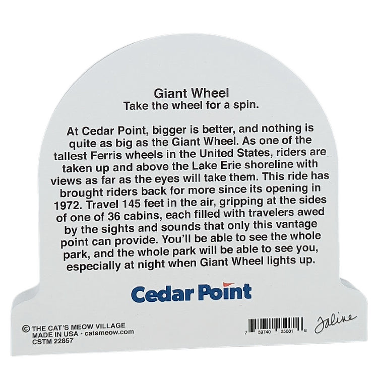 Made in Ohio by Cat's Meow. Each Cat's Meow ornament is colorfully printed on thick wood and provides details on the back.