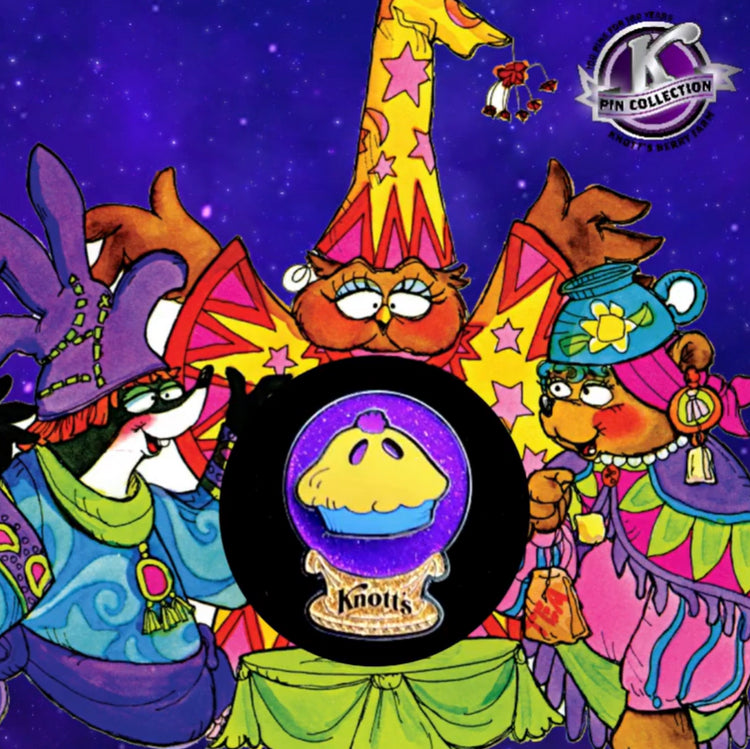 Gaze into the all-knowing crystal and see what the future holds for you...ah, I see you are flaky and sweet...a slice of happiness. The Fortune Tellers of Bear-y Tales see a delicious Knott's Berry Farm boysenberry pie is looming in your future, ready to be devoured in record time... and then a second slice is in order! Fall-O-Ween is the perfect time to order up both a mouthwatering pie and this limited-edition collector pin that's always in good taste. Don't hesitate, or the crystal may grow foggy. It's Fall, after all, and the fog is just around the corner.