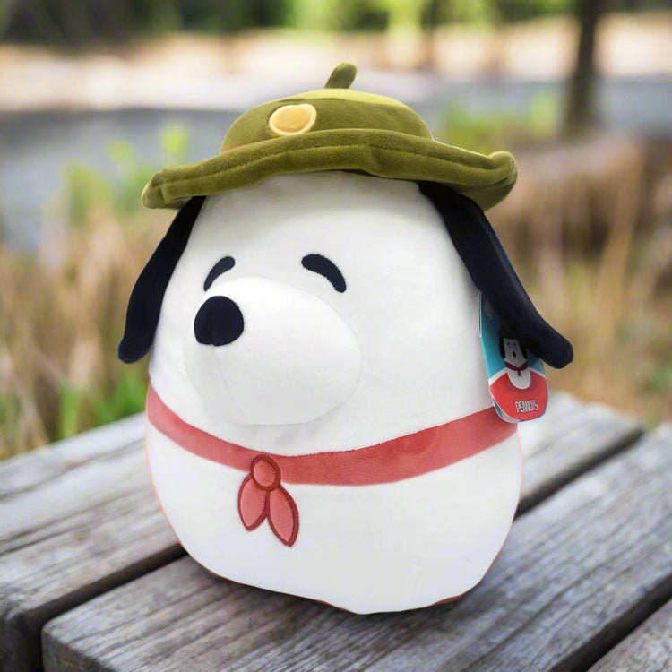 Meet the 10" Snoopy Beagle Scout Squishmallow, the perfect plush companion for all your adventures. With Snoopy dressed in his beagle scout gear and its squishy softness, this toy is sure to bring smiles and snuggles. A must-have for any PEANUTS® fan. No bark, all cuddles.