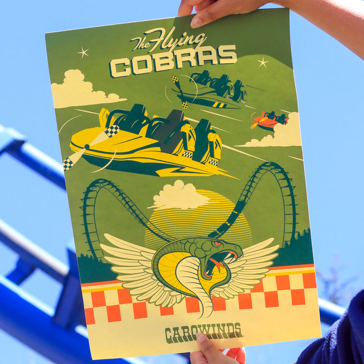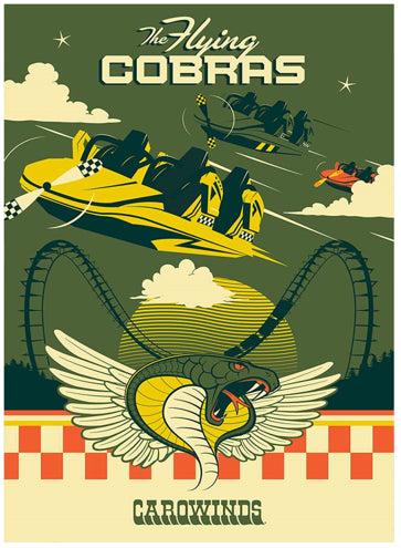Designed by Made to Thrill, The Flying Cobras poster celebrates an early-era Carolina County Fair, where the show was never complete without an air show! 13" x 19"