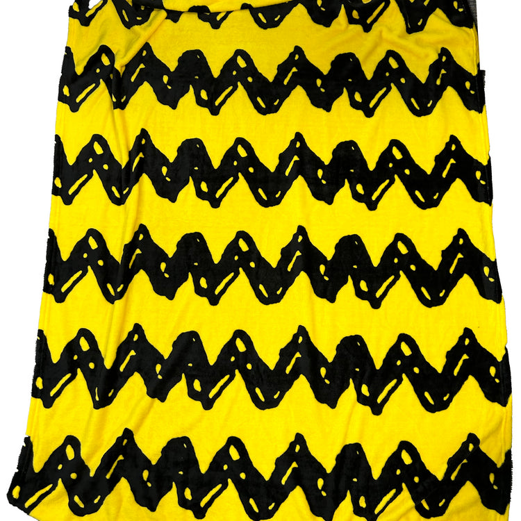 Wrap yourself in comfort and nostalgia with the PEANUTS® Zig Zag 50x60 Blanket. This soft blanket features the iconic Charlie Brown zig zag in fun yellow and black. Perfect for snuggling on the couch or adding a touch of quirkiness to any room.