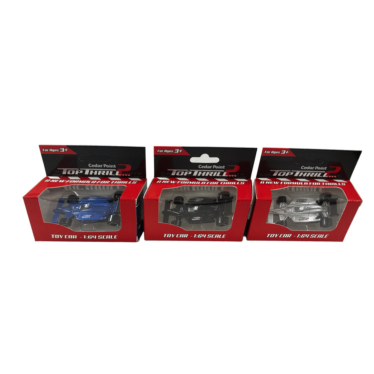 Race into adventure with the Cedar Point Top Thrill 2 Diecast Toy Car! This 1:64 scale replica comes in vibrant blue, sleek black, or shiny silver, perfectly capturing the excitement of the legendary coaster. Its compact size fits right in your hand, making it ideal for speedy play or display. Choose your color and let the fun begin!