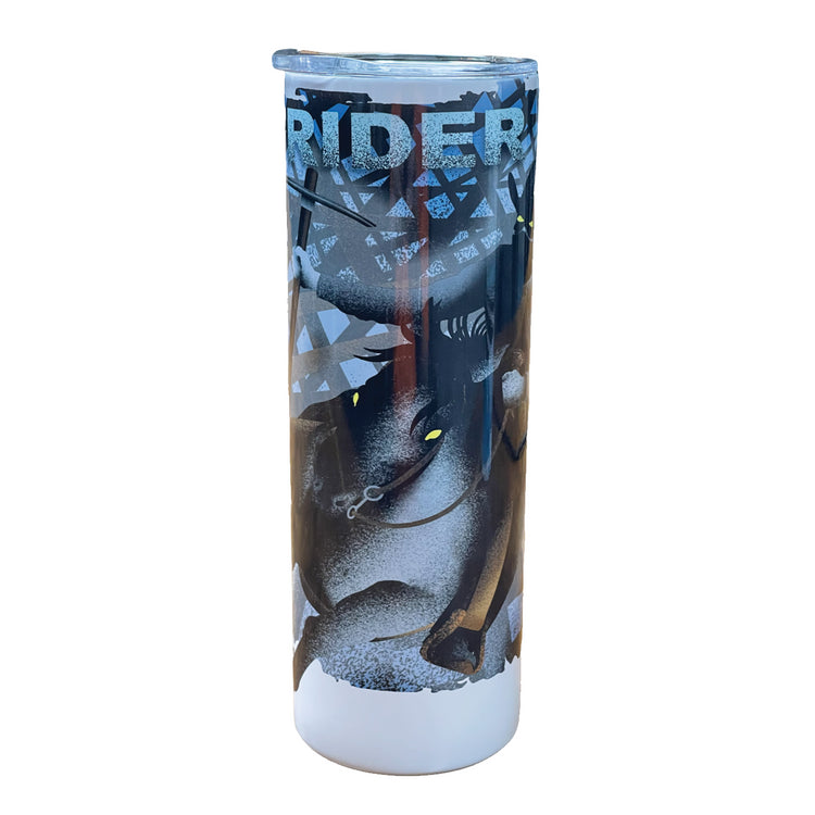 A full-color GhostRider design wraps around this stainless steel tumbler.