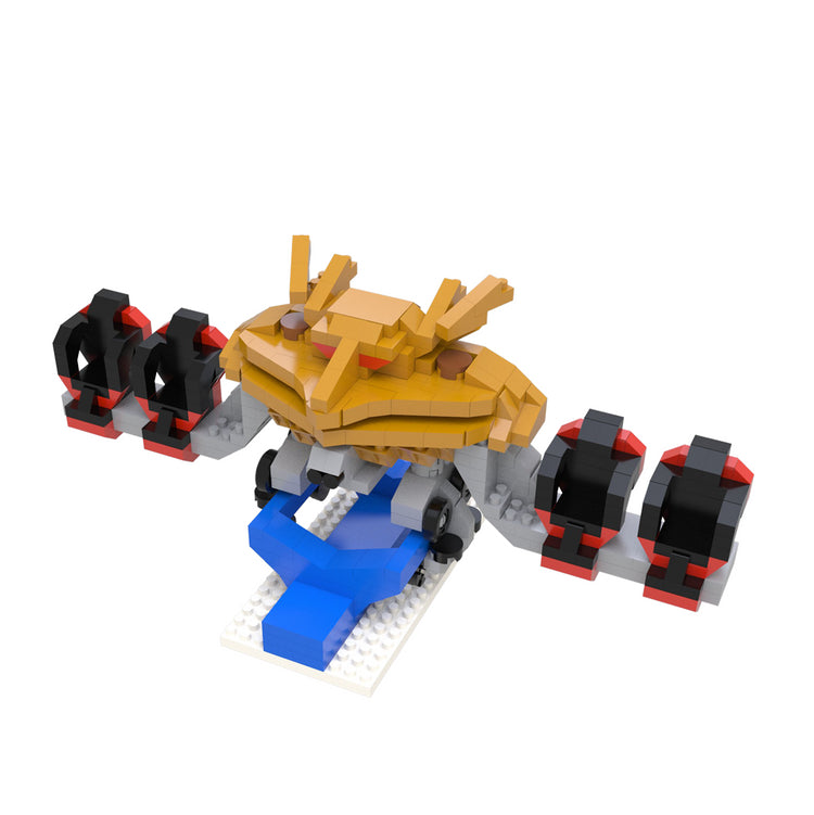 Talk about first impressions. Riders will take flight on the wings of a powerful golden griffon, as it guards the entrance dive-bombing and threading its way through impossibly narrow obstacles. Build the unique front car with this mini block.