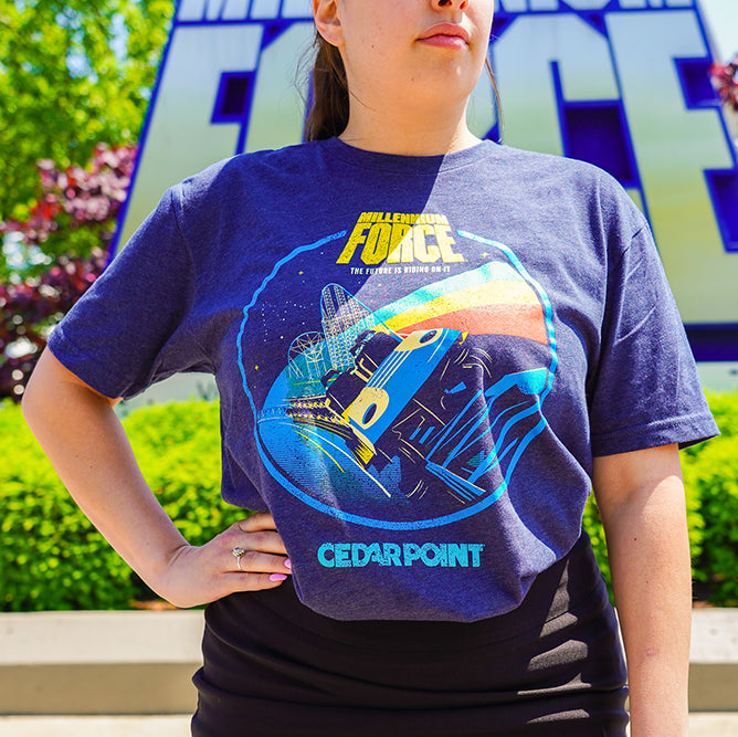 Wear this tee like the future is riding on it! This super soft t-shirt with an updated cosmic design of Millennium Force will be a favorite of yours!